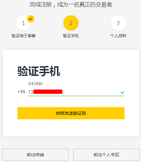 2、注册成功,点击成为一名真正的交易者,去完善资料。